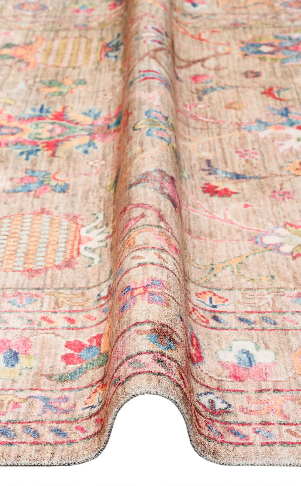 Antique ATK 08 Beige Yıkanabilir Modern Ve Etnik Desenli Kaymaz Tabanlı Makine Halısı