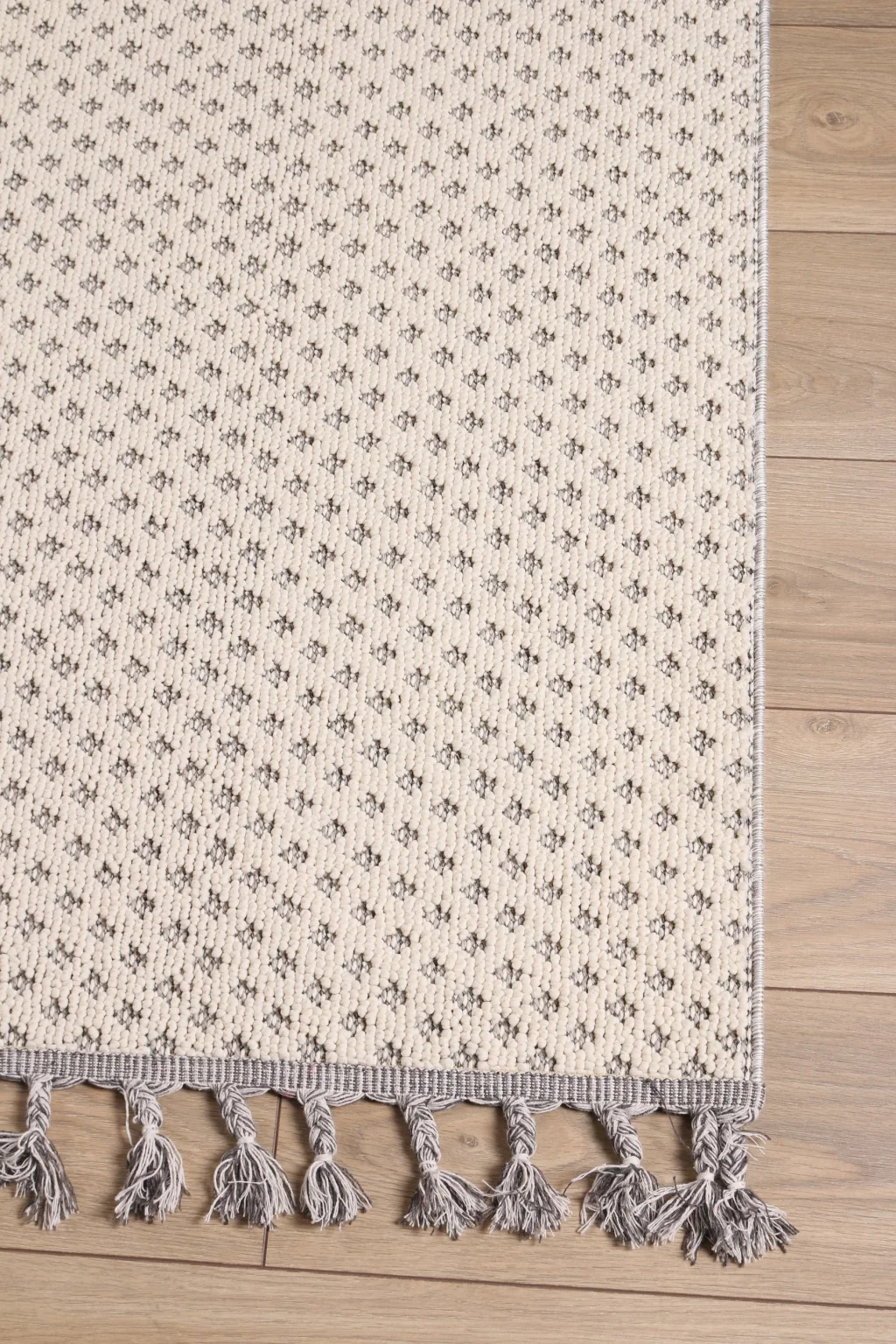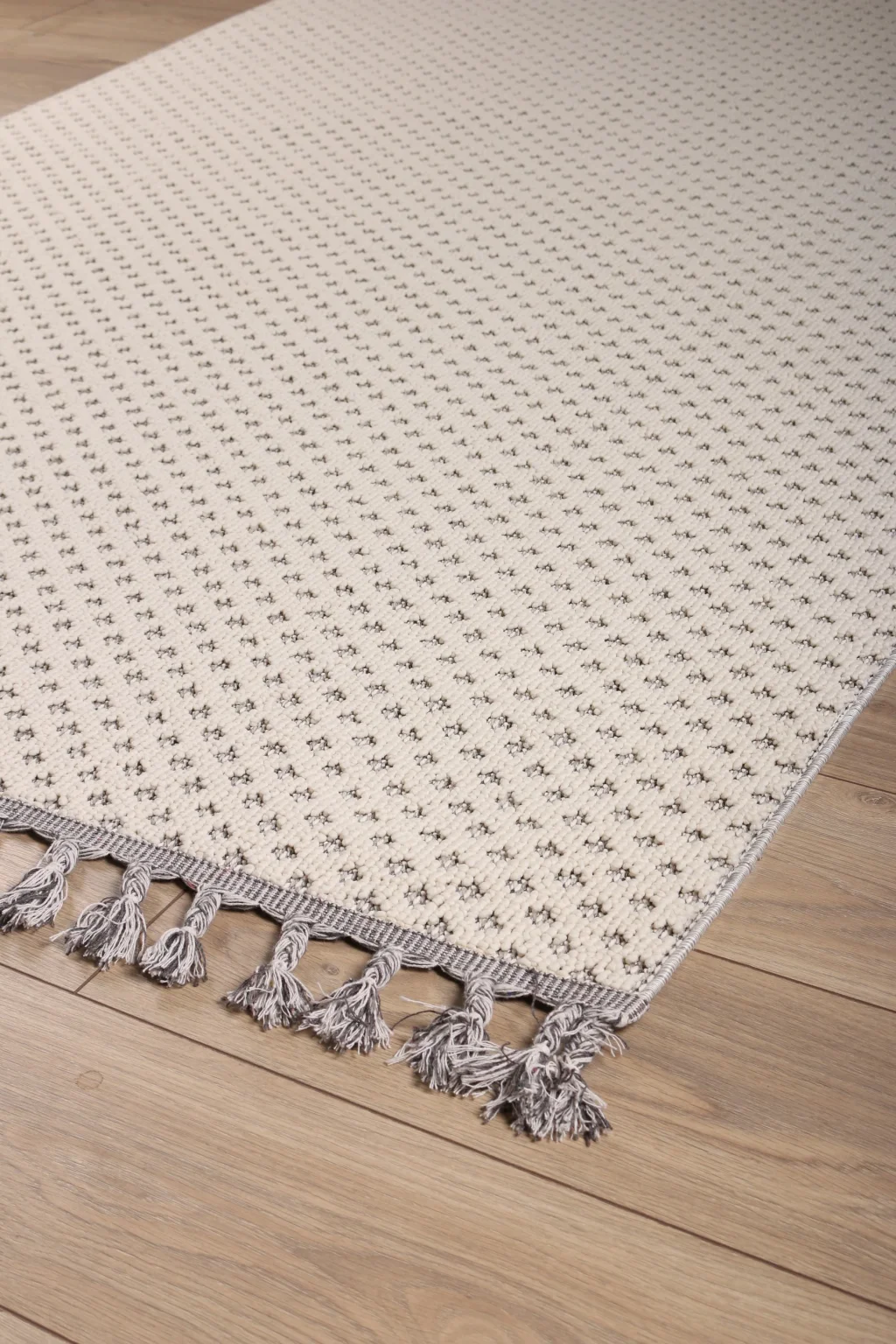 Astra 28047A Beyaz Modern Kaymaz Tabanlı Bukle Tekniği ile Üretilmiş Makine Halısı