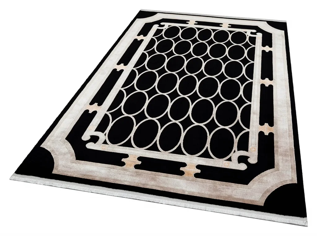 Art Deco Bordürlü Çerçeveli Yumuşak Dokulu Parlak Dokuma Halı