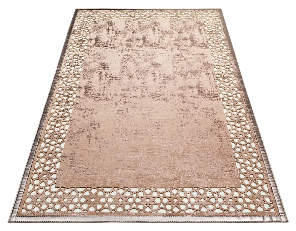 BIANCA DERI 0026 Klasik Ve Modern İşleme ve Oymaya Sahip Parlak Bordürlü Suni Deri Halı