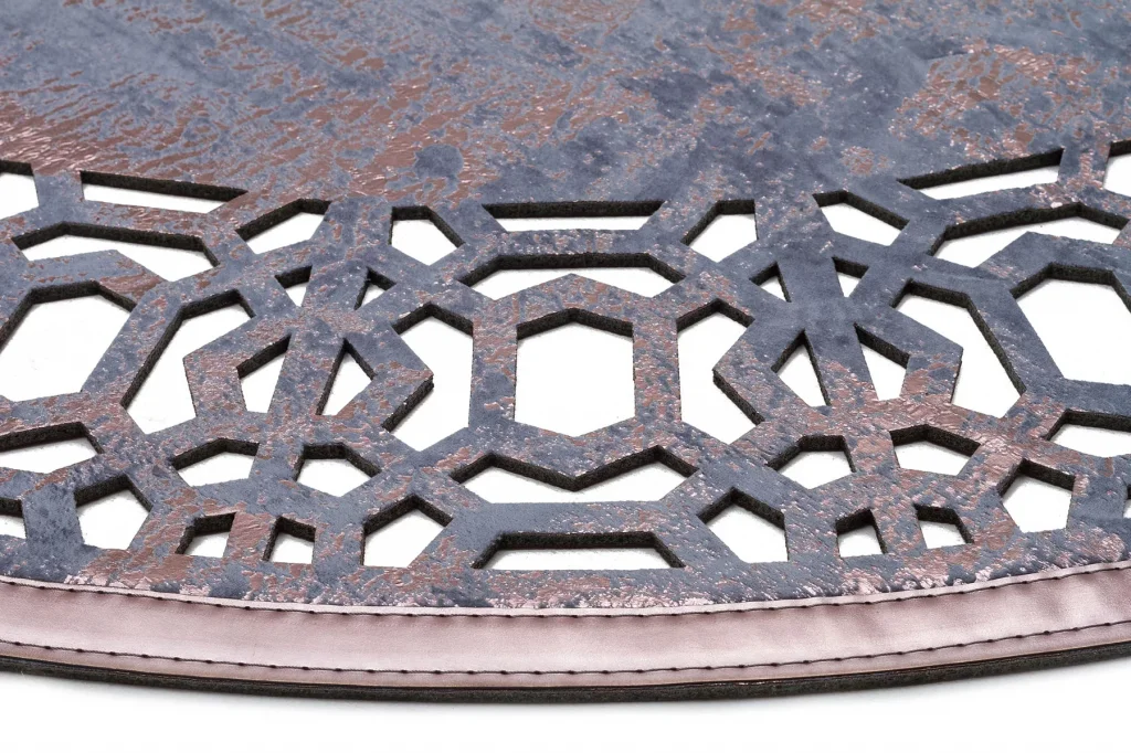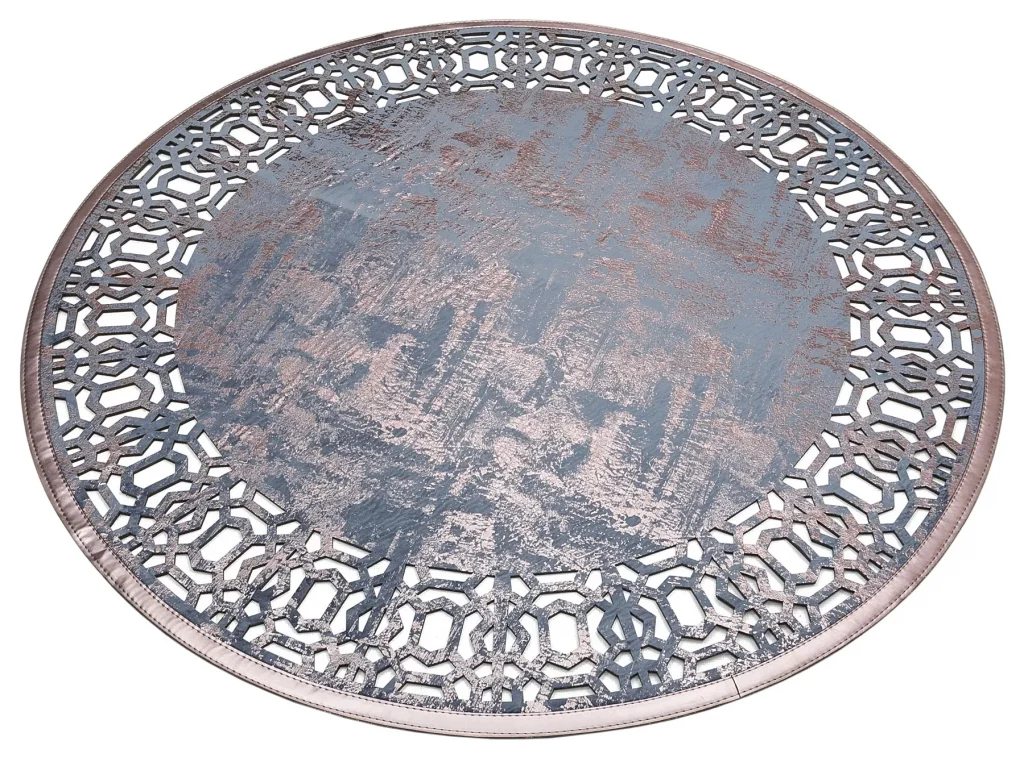 Klasik Ve Modern İşleme ve Oymaya Sahip Parlak Bordürlü Suni Deri Halı