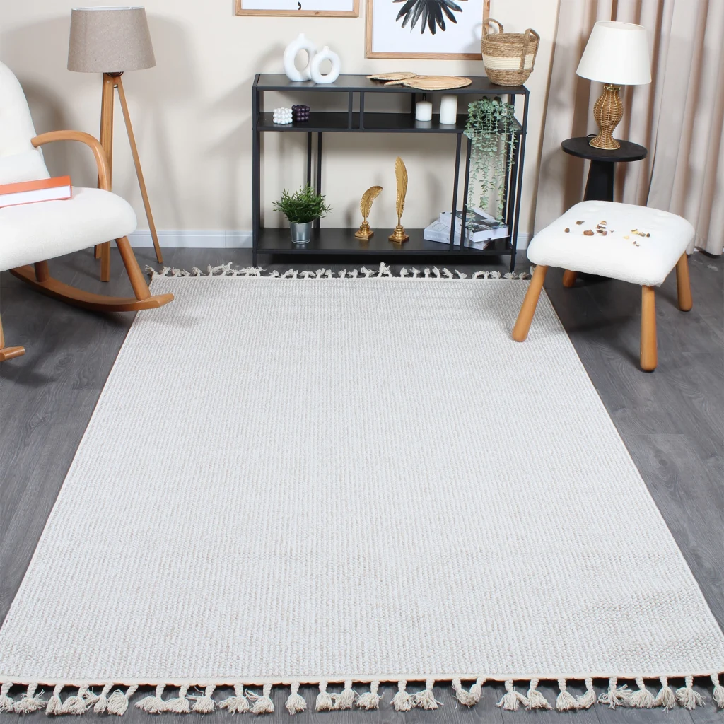 Boho BH-4 Bej Krem Bukle Dokuma Modern Makine Halısı