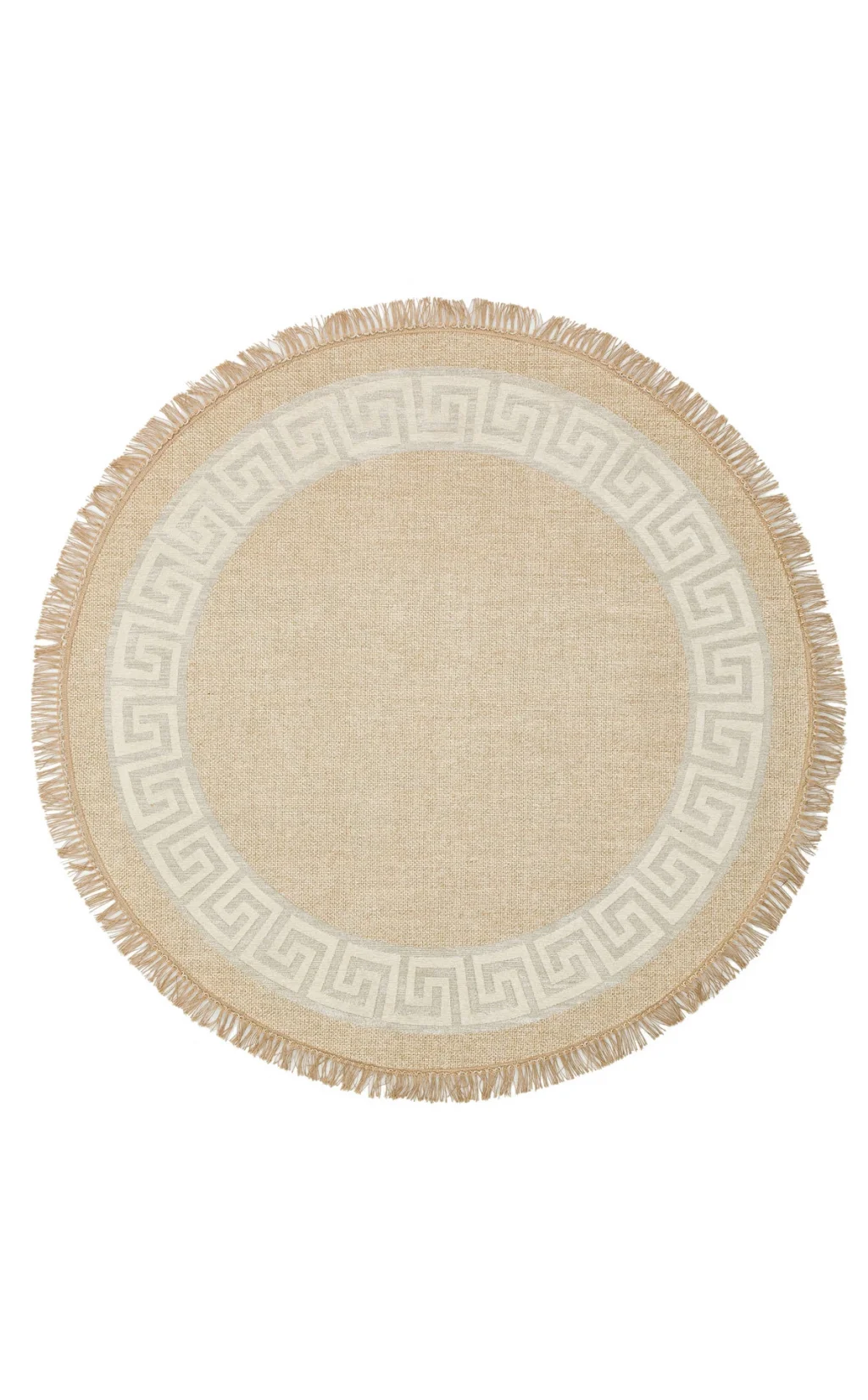 Brooklyn 01 Natural Beıge Q Yuvarlak Hasır Görünümlü Kaymaz Renkli Dokuma Modern Kilim