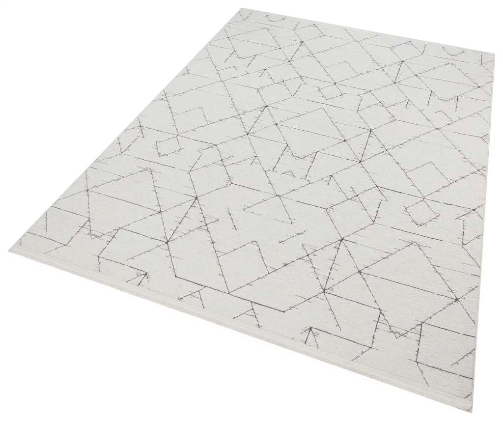 Diva 5006 Beyaz Dekoratif Modern Kaymaz Tabanlı Makine Halısı