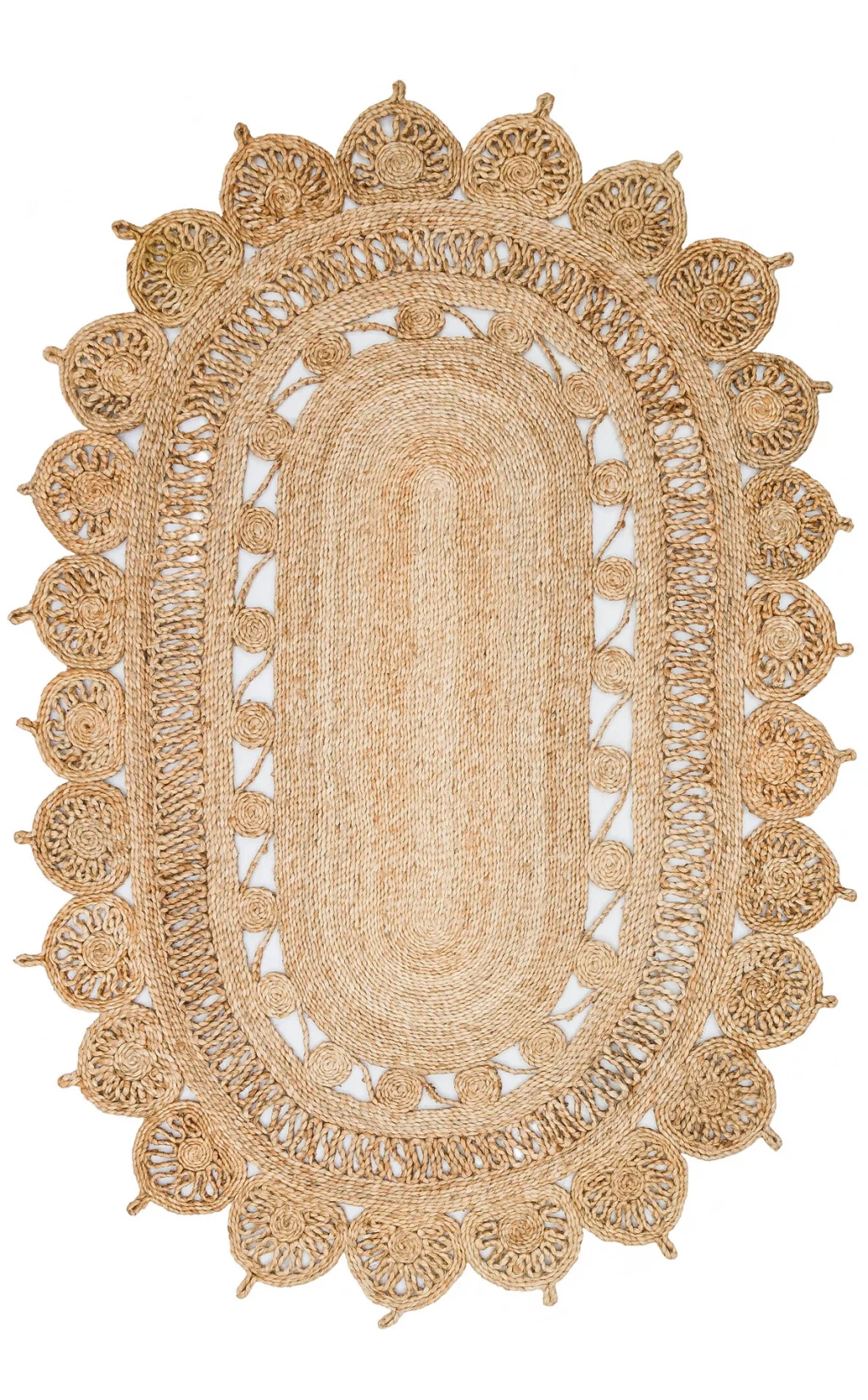 Yuvarlak veya Oval El Dokuma Naturel Jüt Hasır Halı