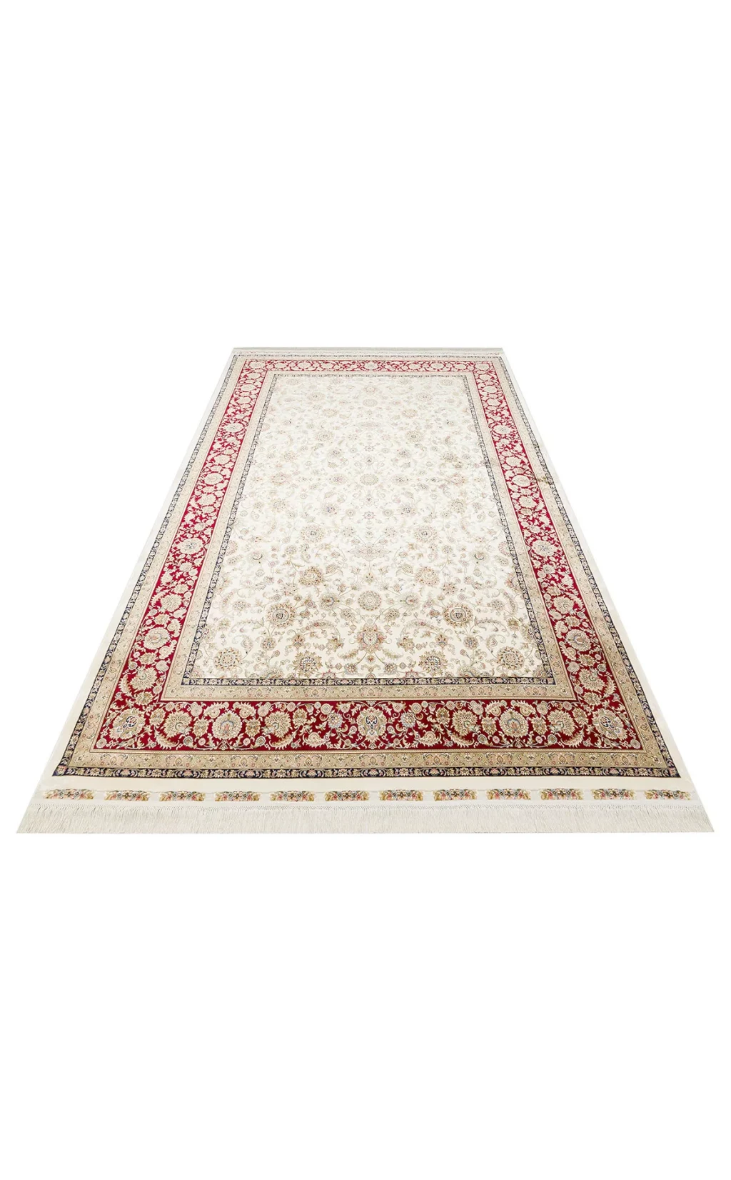 İsfahan 03 Cream Red Klasik Desenli Yüksek Kalite Sık Dokuma Makine Halısı