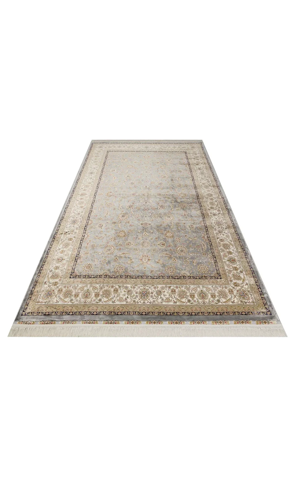 Isfahan 03 Grey Cream Klasik Desenli Yüksek Kalite Sık Dokuma Makine Halısı