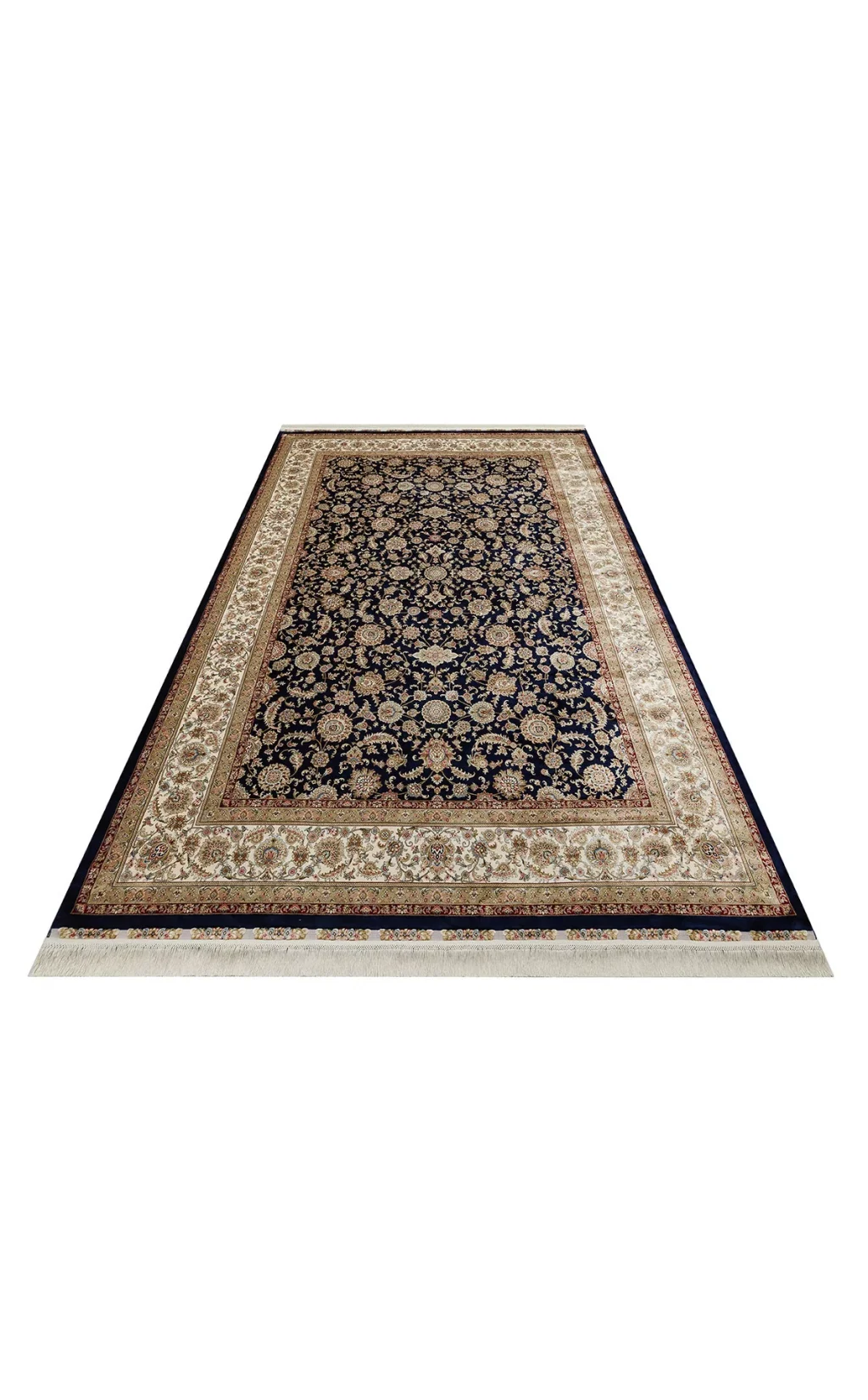 Isfahan 03 Navy Cream Klasik Desenli Yüksek Kalite Sık Dokuma Makine Halısı