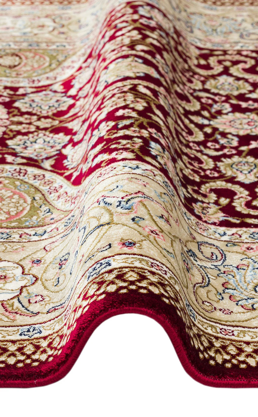İsfahan 03 Cream Red Klasik Desenli Yüksek Kalite Sık Dokuma Makine Halısı