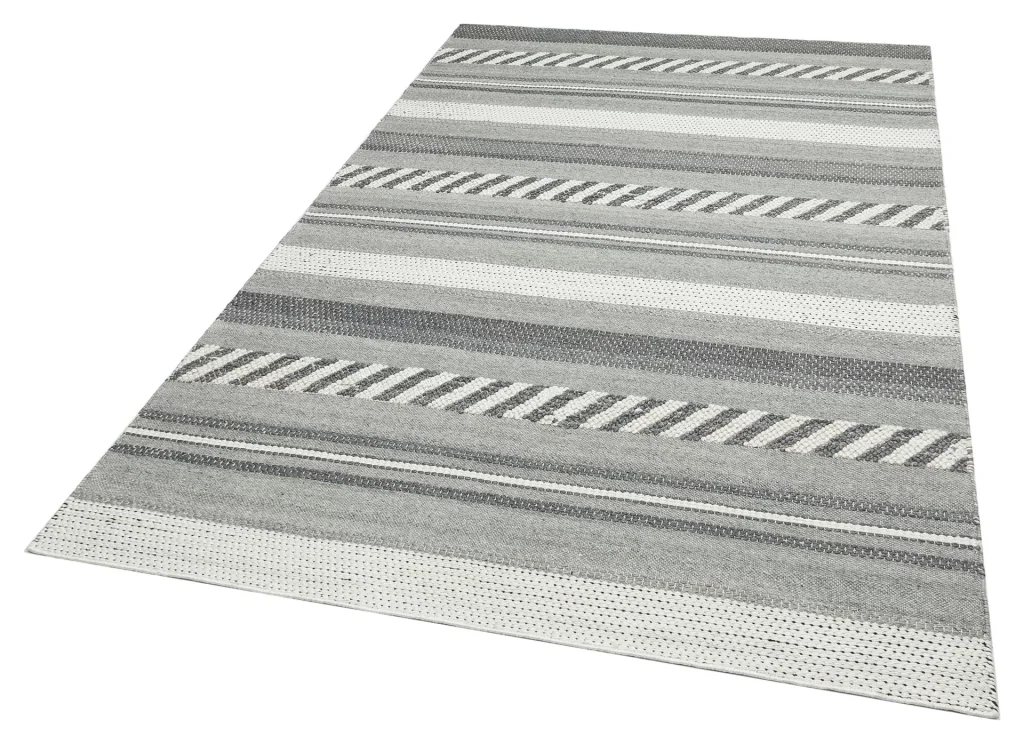 Jade Basketweave Grey Naturel Kazak Örgü Desenli El Dokuma Örgü Halı