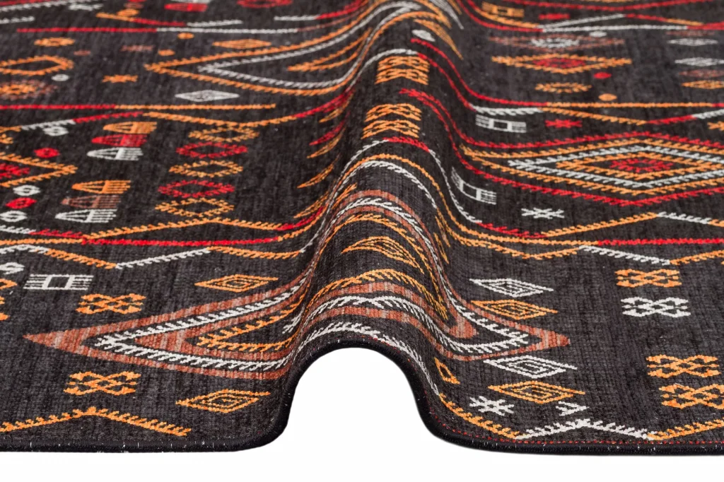 Otantik Geleneksel Desenli Yıkanabilir Renkli Baskı Kilim