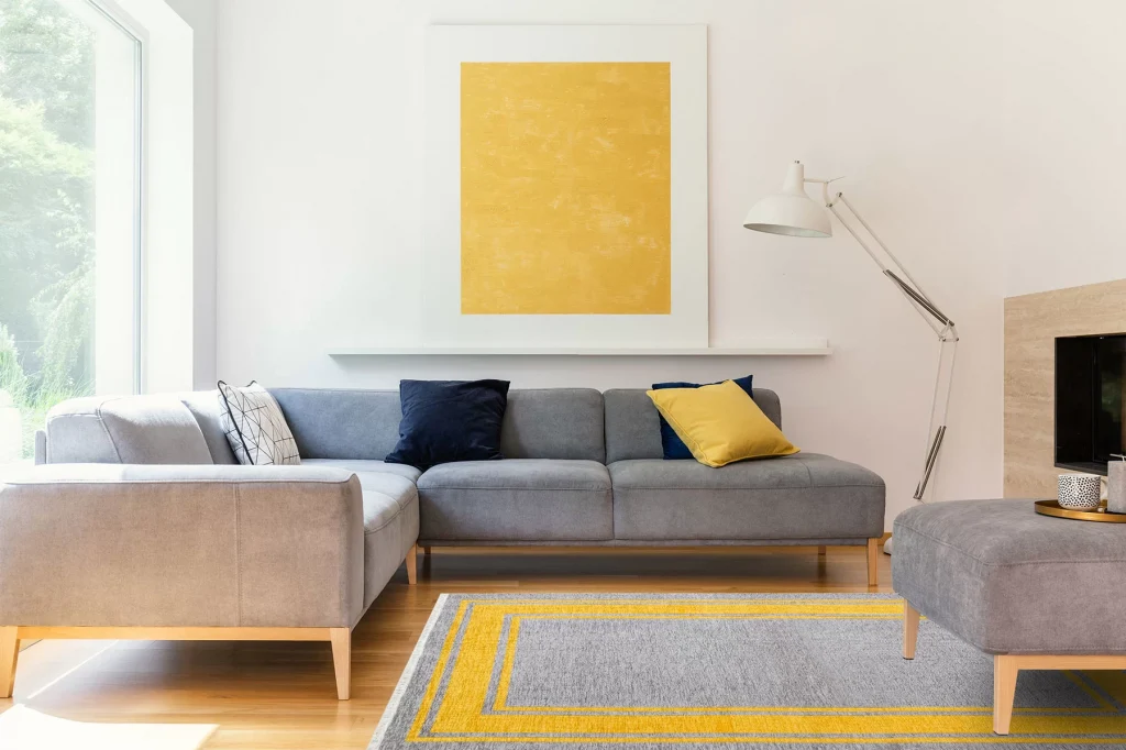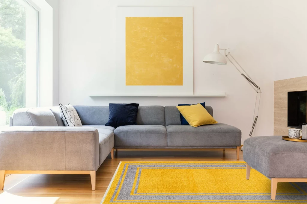 Arya Ar 18 Yellow Grey %100 Geri Dönüşümlü Pamuktan Çift Taraflı Yıkanabilir Modern Dekoratif Kilim
