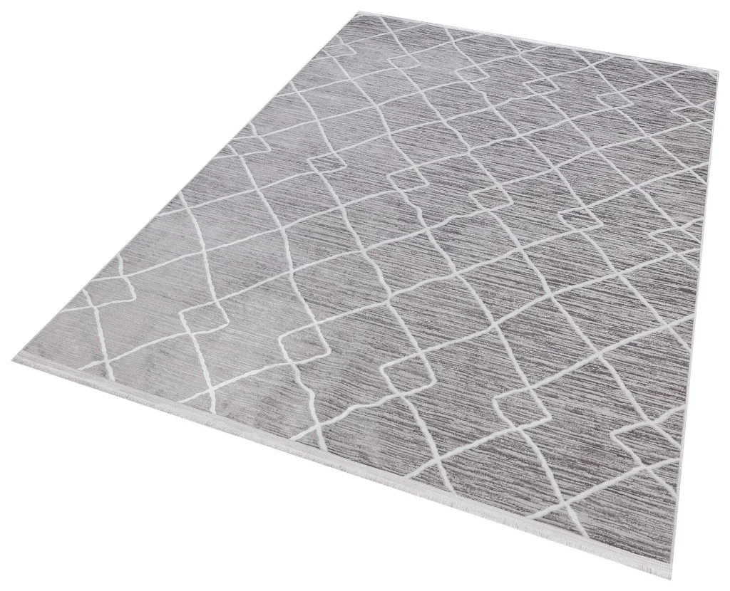 New Novart 2024 Gri Dekoratif Modern Kaymaz Tabanlı Makine Halısı ✄