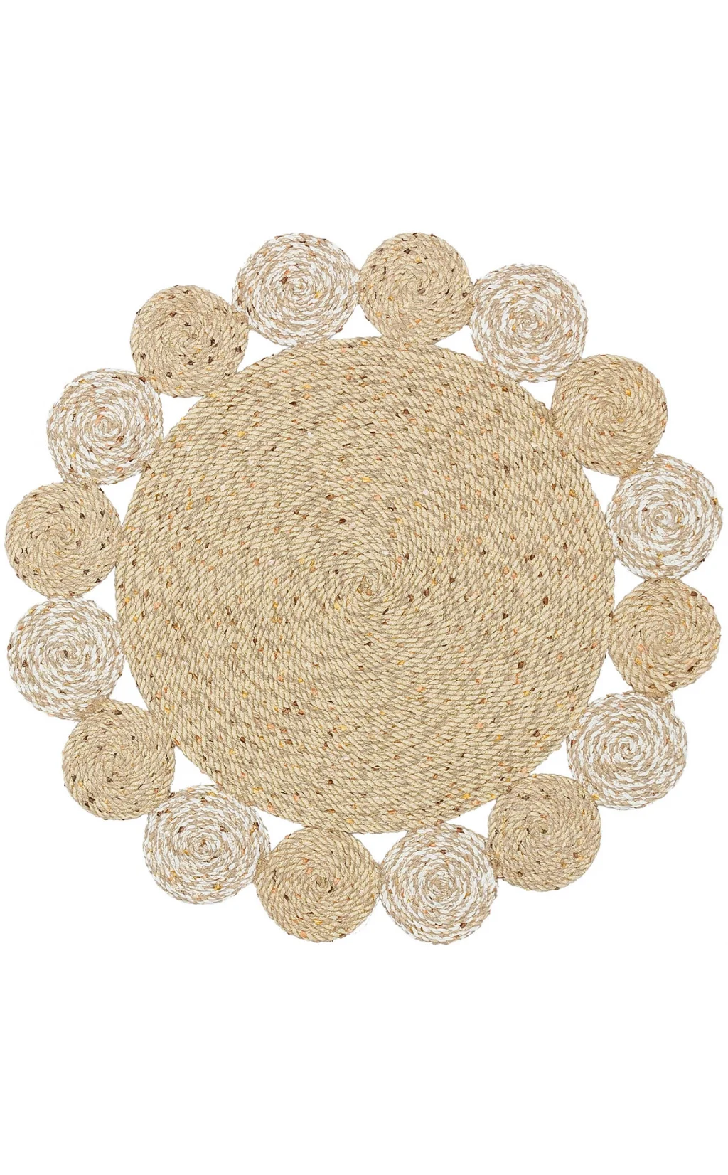 Patna PTN 14 Natural Yuvarlak Jüt Hasır Görünümlü Hav Toz Vermez Dekoratif Örgü Halı