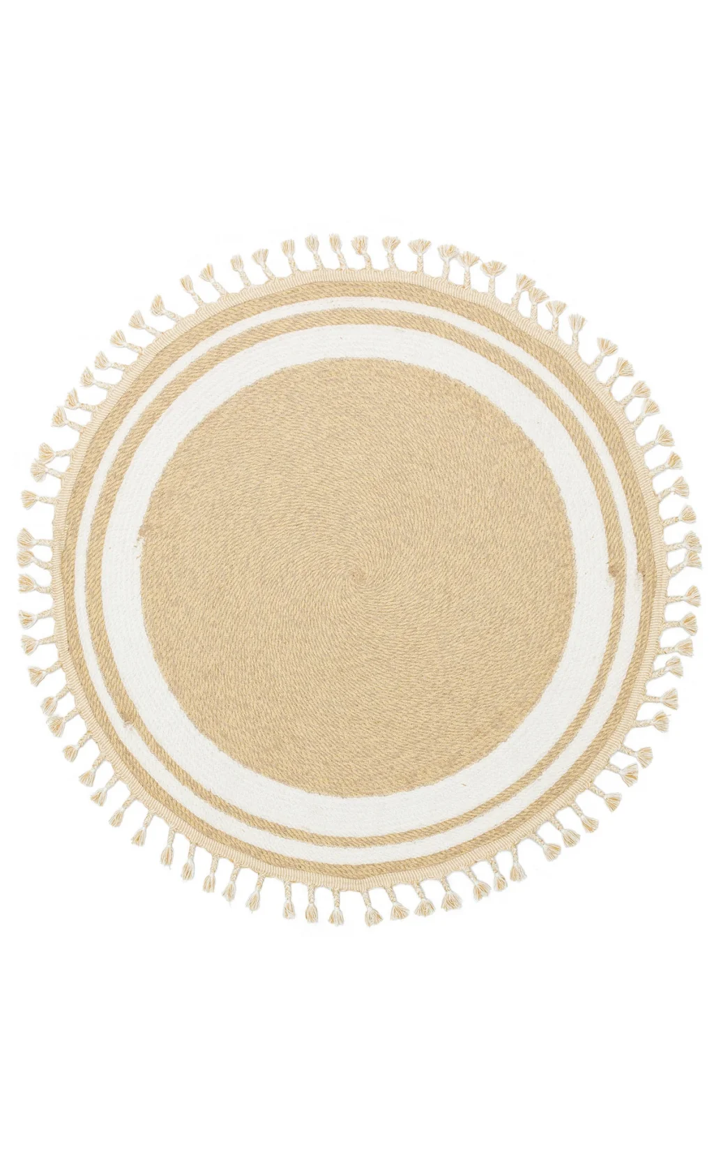 Patna PTN 14 Natural Yuvarlak Jüt Hasır Görünümlü Hav Toz Vermez Dekoratif Örgü Halı