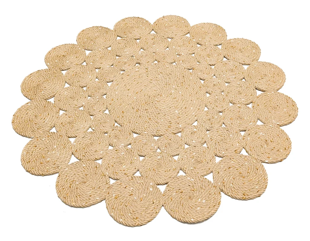 Patna PTN 14 Natural Yuvarlak Jüt Hasır Görünümlü Hav Toz Vermez Dekoratif Örgü Halı