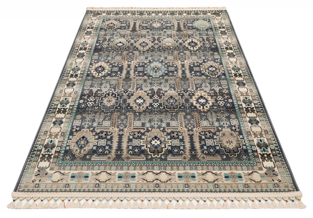 PETRA HALI 0019 Hav Toz Vermez Etnik ve Modern Desenli Renkli Saçaklı Halı