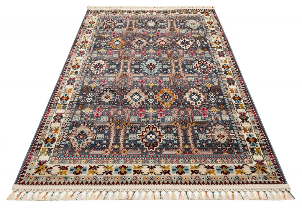 Hav Toz Vermez Etnik ve Modern Desenli Renkli Saçaklı Halı