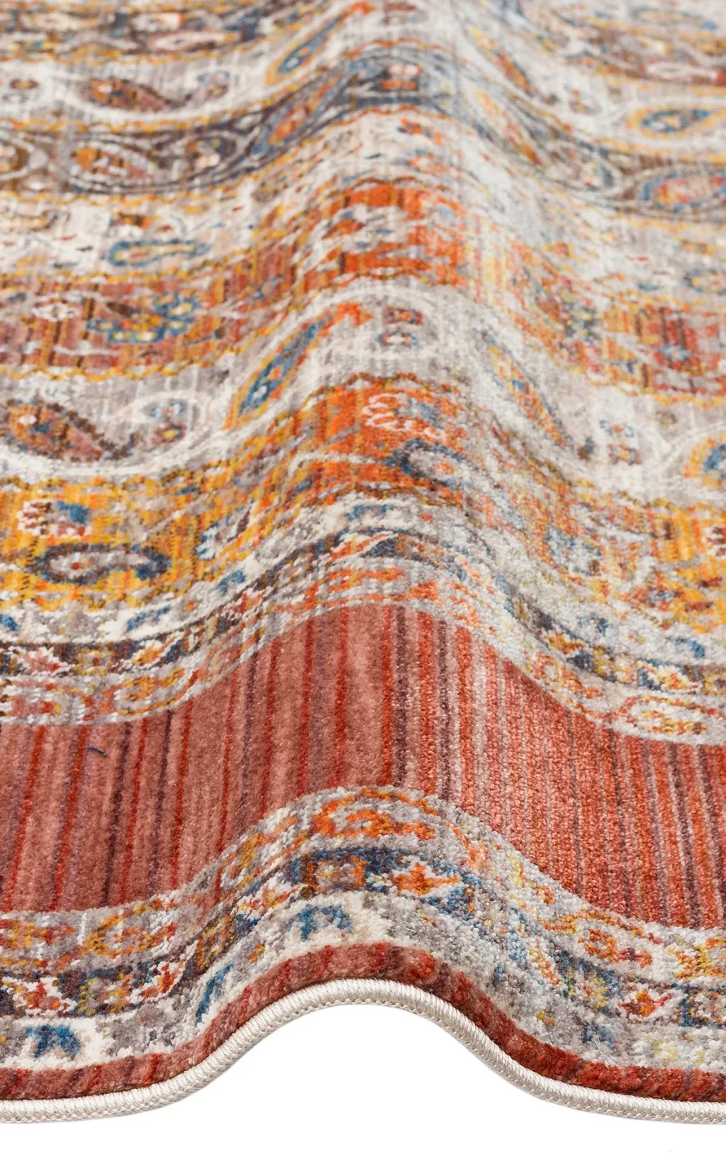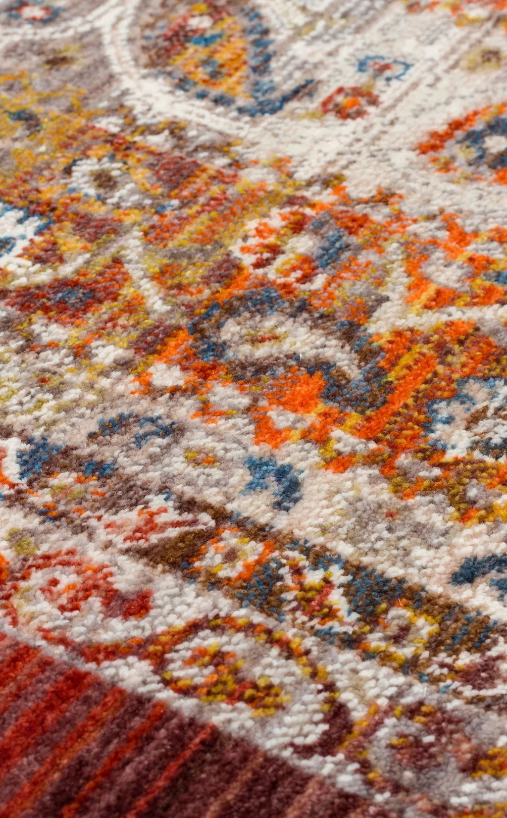 Sıcak Renk Tonlu Etnik Desenli Yumuşak Dokulu Makine Halısı