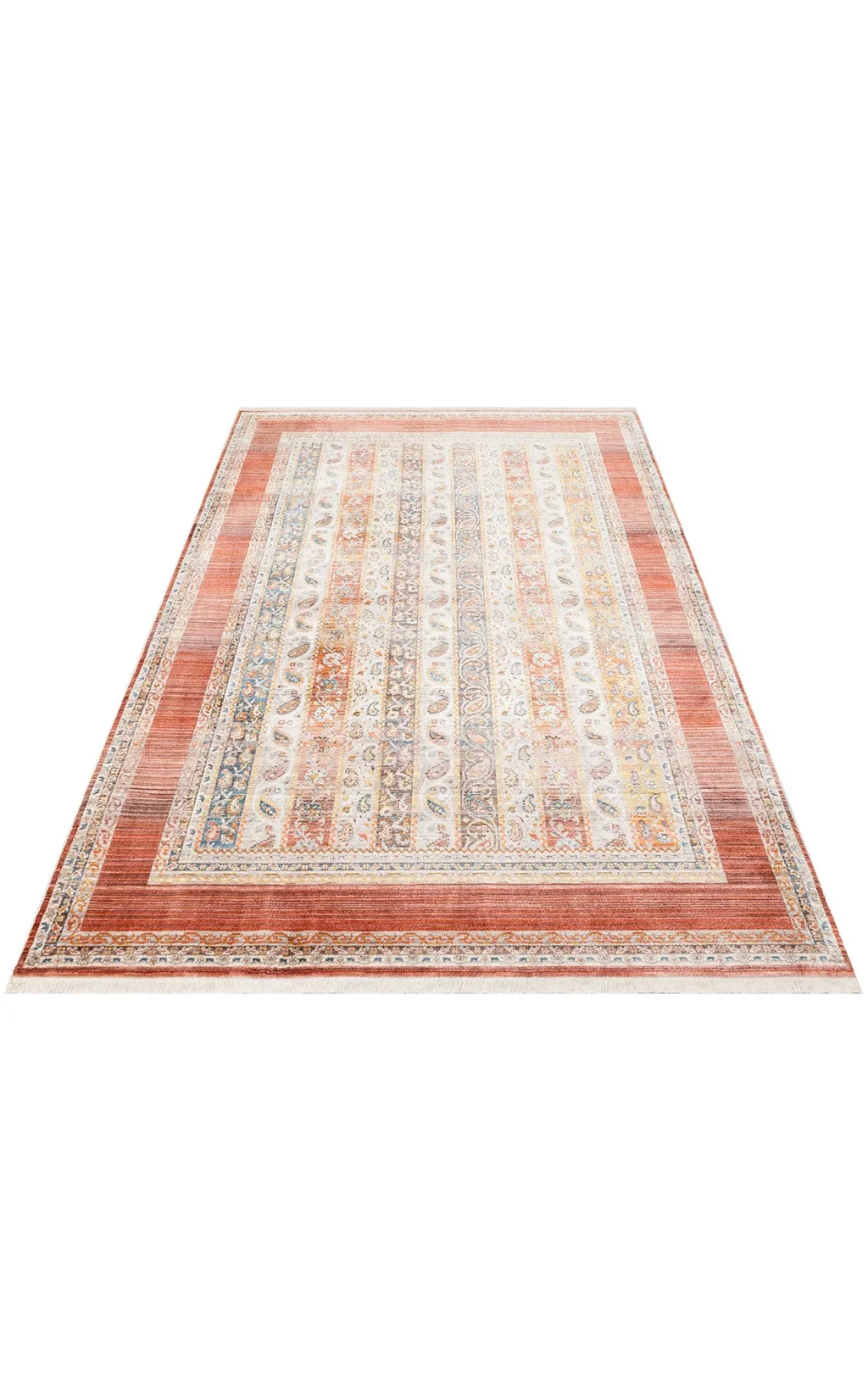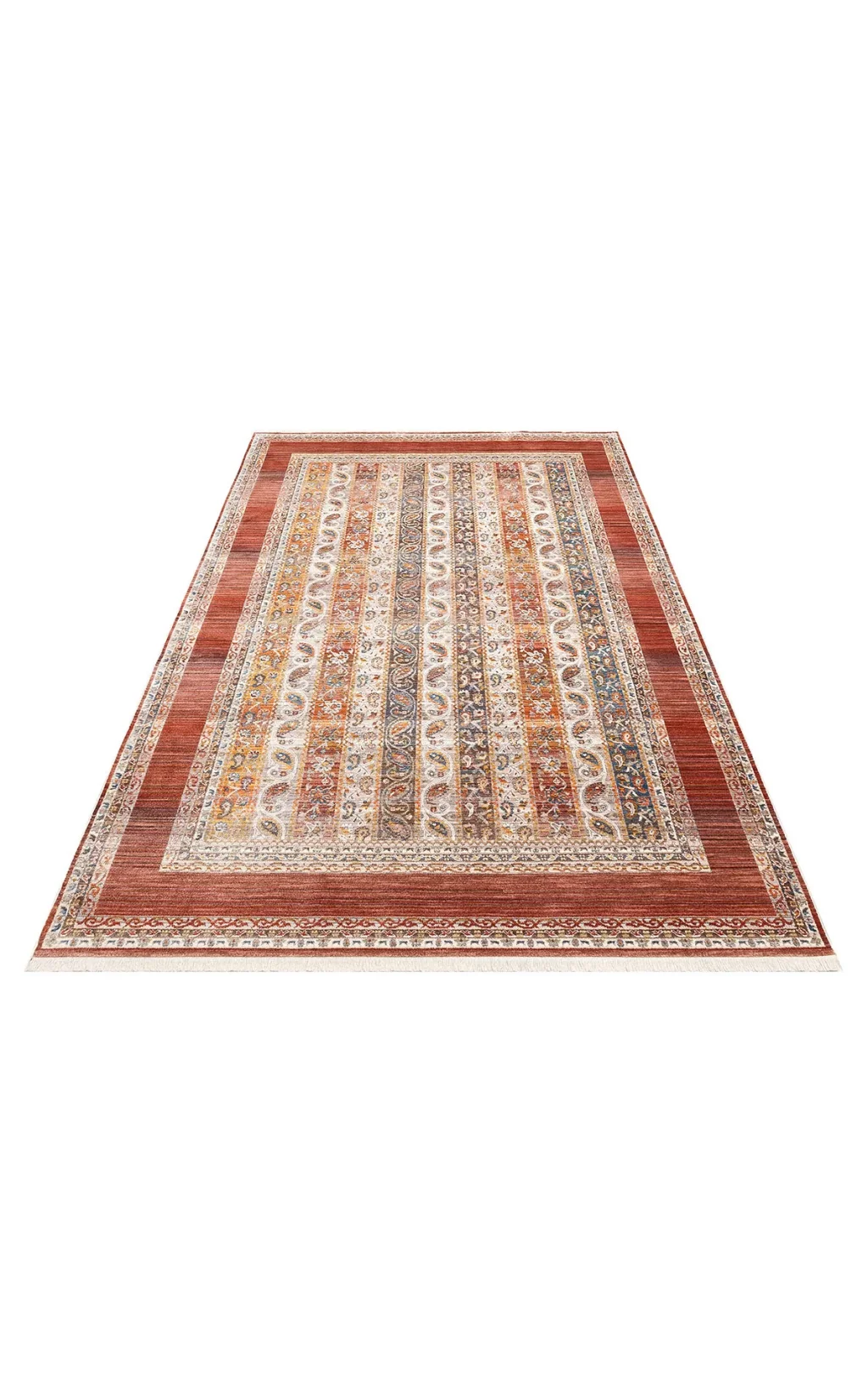 PIETRA HALI 0047 Sıcak Renk Tonlu Etnik Desenli Yumuşak Dokulu Makine Halısı