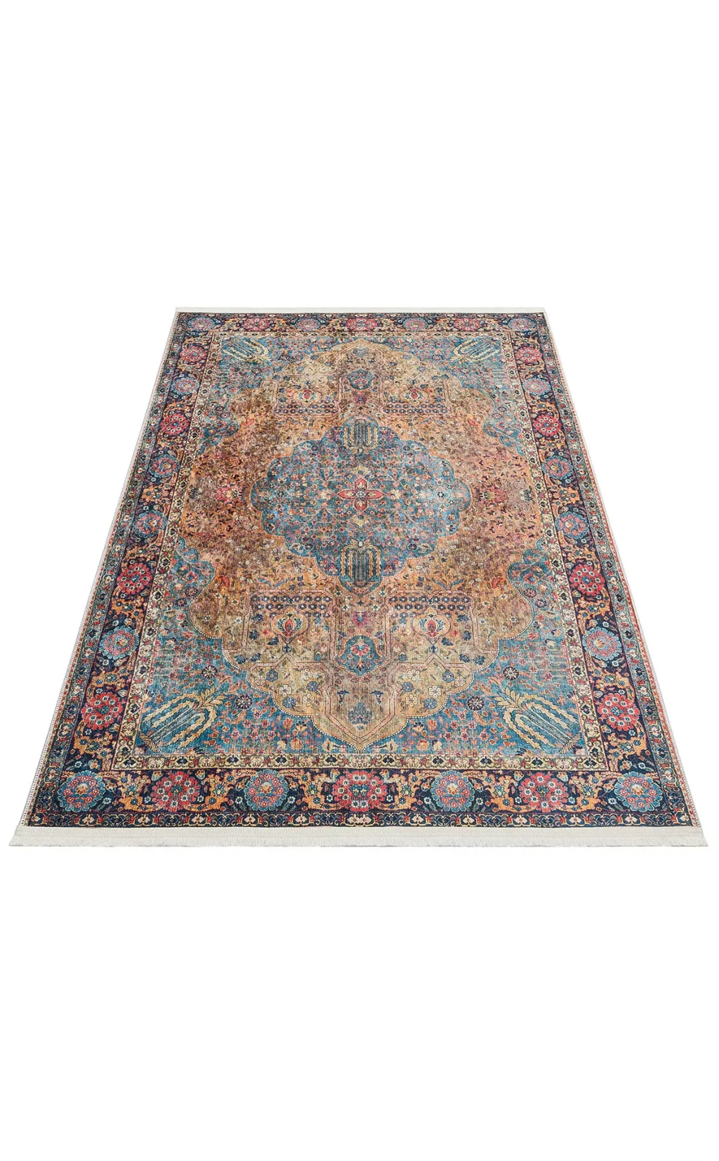 Otantik Geleneksel Desenli Yıkanabilir Renkli Baskı Kilim