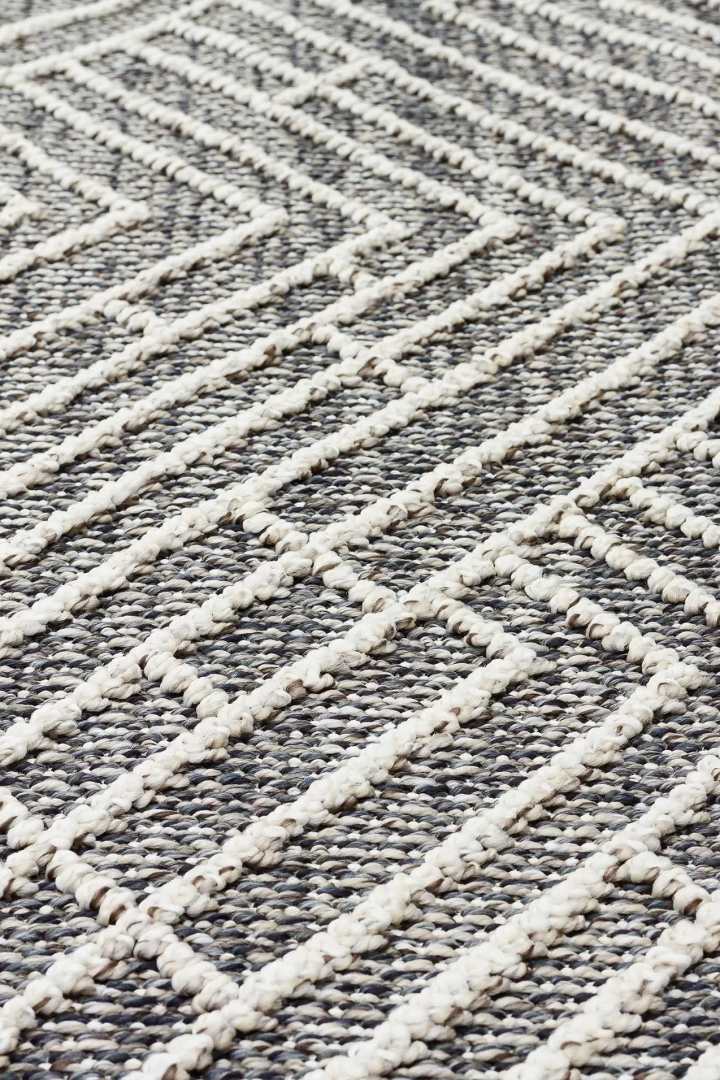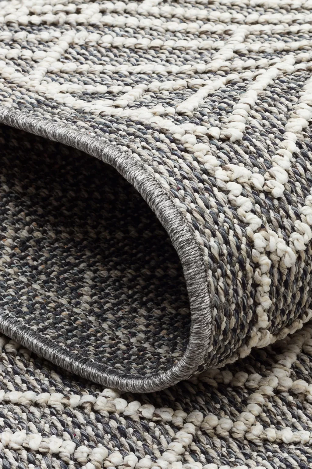 Soho Sh 07 Grey Ivory Hav Vermeyen Özel Ipler Ile Üretilen Etnik Örgü Desenlere Sahip Makine Halısı