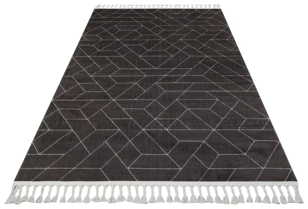 Urban 03 Black Grey Etnik Desenlere Sahip Hav Toz Vermez Yumuşak Dokulu Modern Halı